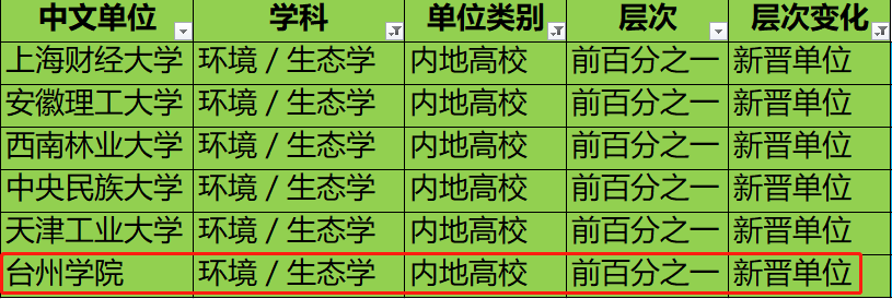 我校环境/生态学新晋ESI排名全球前1%学科