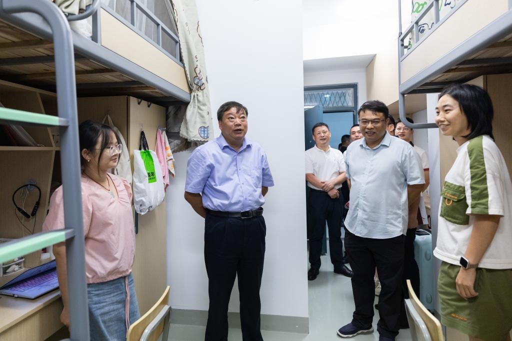9月9日,校党委副书记金先龙走访研究生寝室。