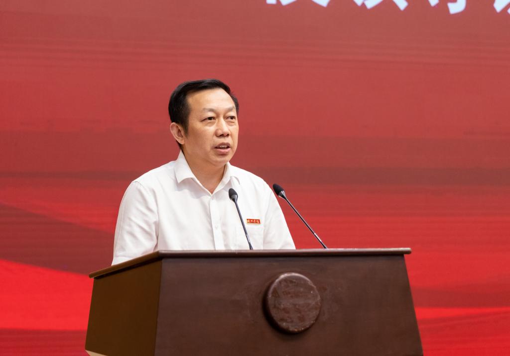 校党委副书记、校长乐传永代表学校讲话。他通过三个“一”的闪亮标签阐释了每位2023级研究生所洋溢的耀眼光芒;作为“导游”介绍了“风光秀丽的生态之城”、“历史悠久的文化之城”、“民营经济的样板之城”——台州;作为“家长”,欢迎研究生新生加入“充满志气和豪气、敢想敢干、勇于争先”的台州学院大家庭;同时提出了三点希望,希望同学们不论什么时候,均要胸怀祖国、潜心研究、加强实践,勇担时代使命、精进学术能力、提升服务本领,成就不负新时代的精彩人生。