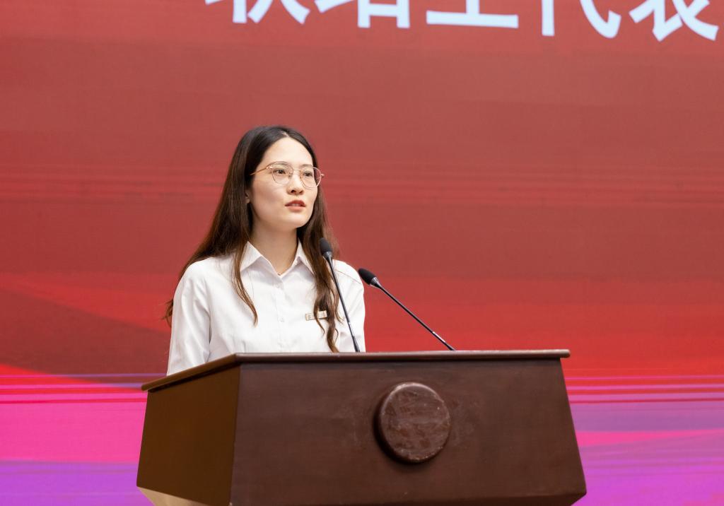 材料与化工学位点徐佳明代表新生发言。他表示自己会牢记“澡身浴德,修业及时”校训精神,不忘初心,勇毅前行。他坚信在学校一心一意的培养和自身的奋勇拼搏下,会成为一个有担当、有作为、有理想、有追求的新时代研究生。