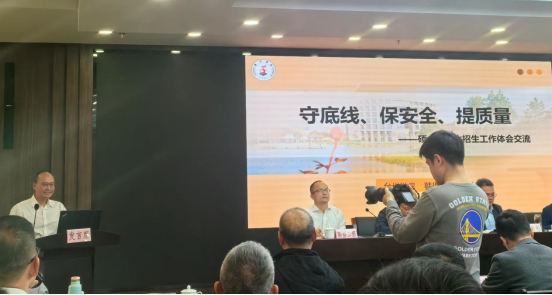 韩得满以“所有环节不能少、所有要求不变通、所有过程受监督”的我校研究生招生工作理念为切入点,从“三强化”凝心聚力,守好研招“责任田”;“三优化”精准发力,布好研招“路线图”;“三坚持”形成推力,做好研招“考试卷”等三个方面对我校的研究生招生工作经验进行介绍。韩得满强调,研究生招生工作作为高层次人才培养的第一环,不仅关乎学校的社会影响力,更是关系教育强国建设战略的早日实现,招生单位都应以高度的政治使命感做好研究生招生的各项工作。我校开展研究生招生工作两年来,严守工作纪律,坚持集体决策,坚持公平公正,坚持全程监督,高标准建设基础设施,高规格配备设备,严要求规范流程,并严格执行双重保障机制,确保研招工作万无一失。