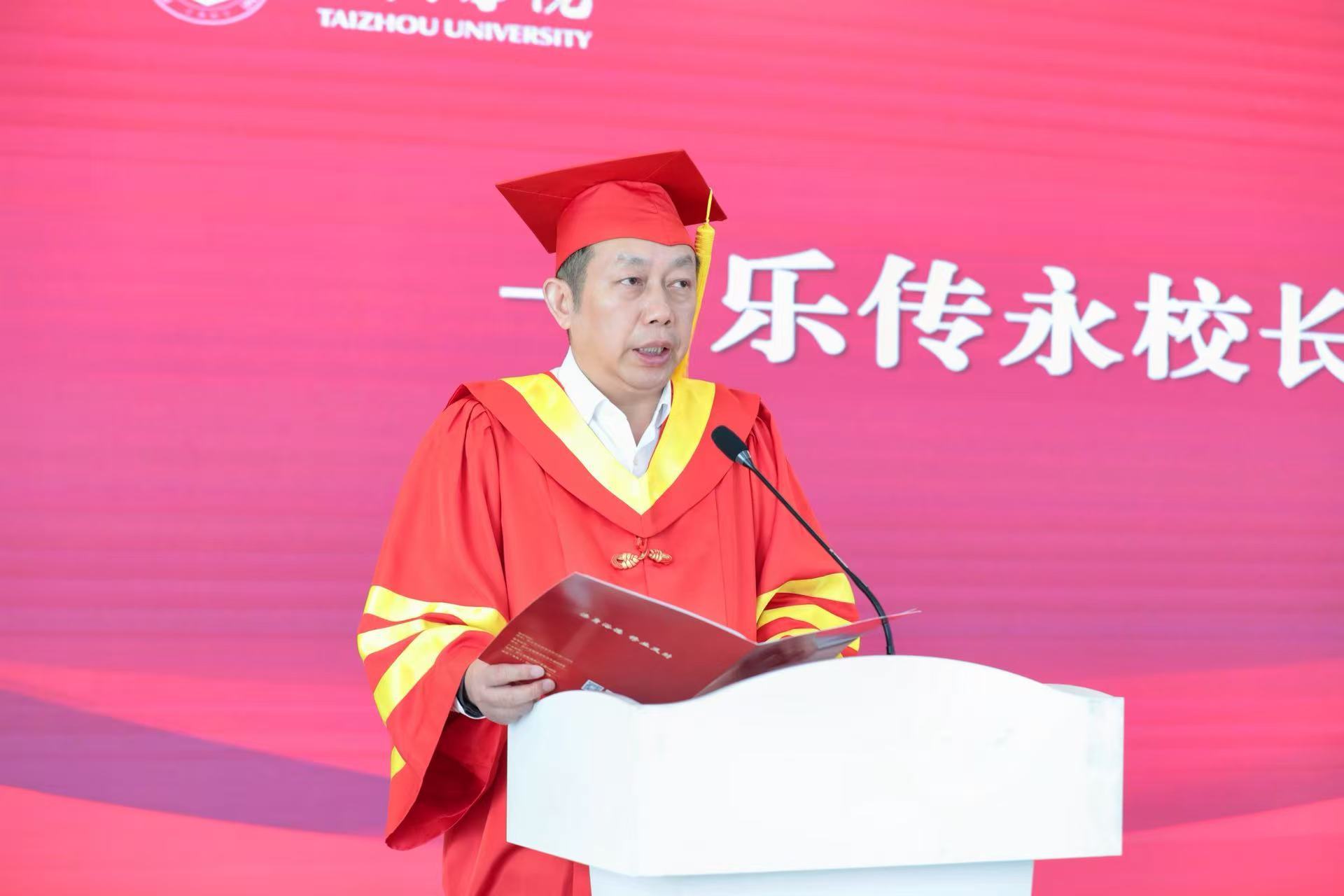 校长乐传永代表学校向首届硕士毕业生致以热烈祝贺,高度肯定了毕业生们作为学校研究生教育“开拓者”的特殊意义。他指出,学位的授予既是对同学们学术能力与综合素养的认可,更意味着一份面向国家、社会与家庭的责任担当。随后他对毕业生提出三点期望:一要秉持“探微求真”精神,永葆好奇与求真之心,勇攀创新高峰,将个人钻研融入国家高水平科技自立自强征程,争做创新驱动先行者;二要践行“经世致用”理念,坚守学问济世信念,理论联系实际,在解决真问题、服务国计民生中实现价值,当好推动高质量发展的实干家;三要胸怀“国之大者”,将小我融入大我,明晰建设强国的责任使命,传承科学家精神与工程师文化,以扎实本领报效祖国,成为民族复兴伟业的坚定奋斗者。